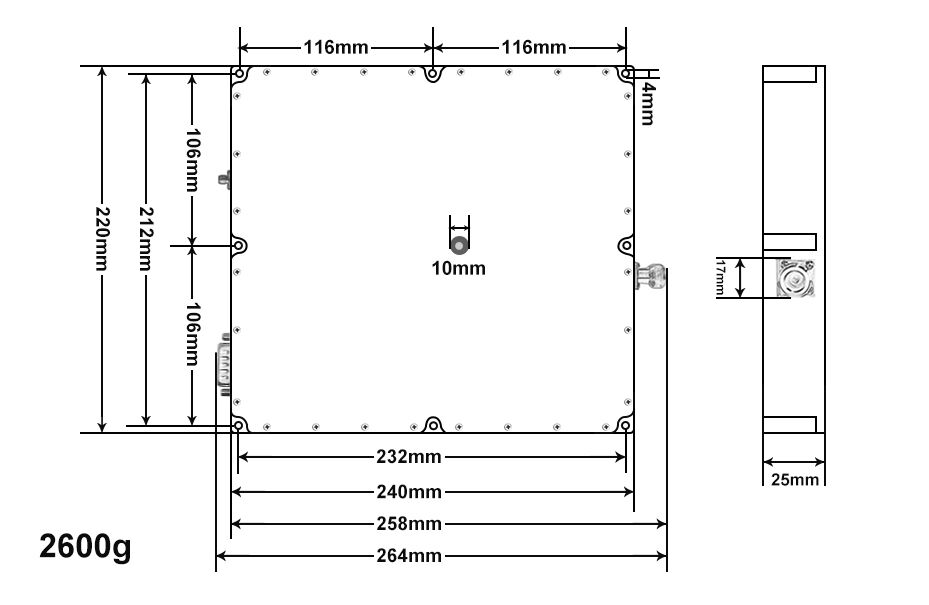 Note: 1. The overall dimensions are for reference only; 2. The size can be appropriately increased or decreased according to the customer's requirements; 3. The positions of the input interface, output interface and power supply interface can be changed according to the actual needs of the customers.
